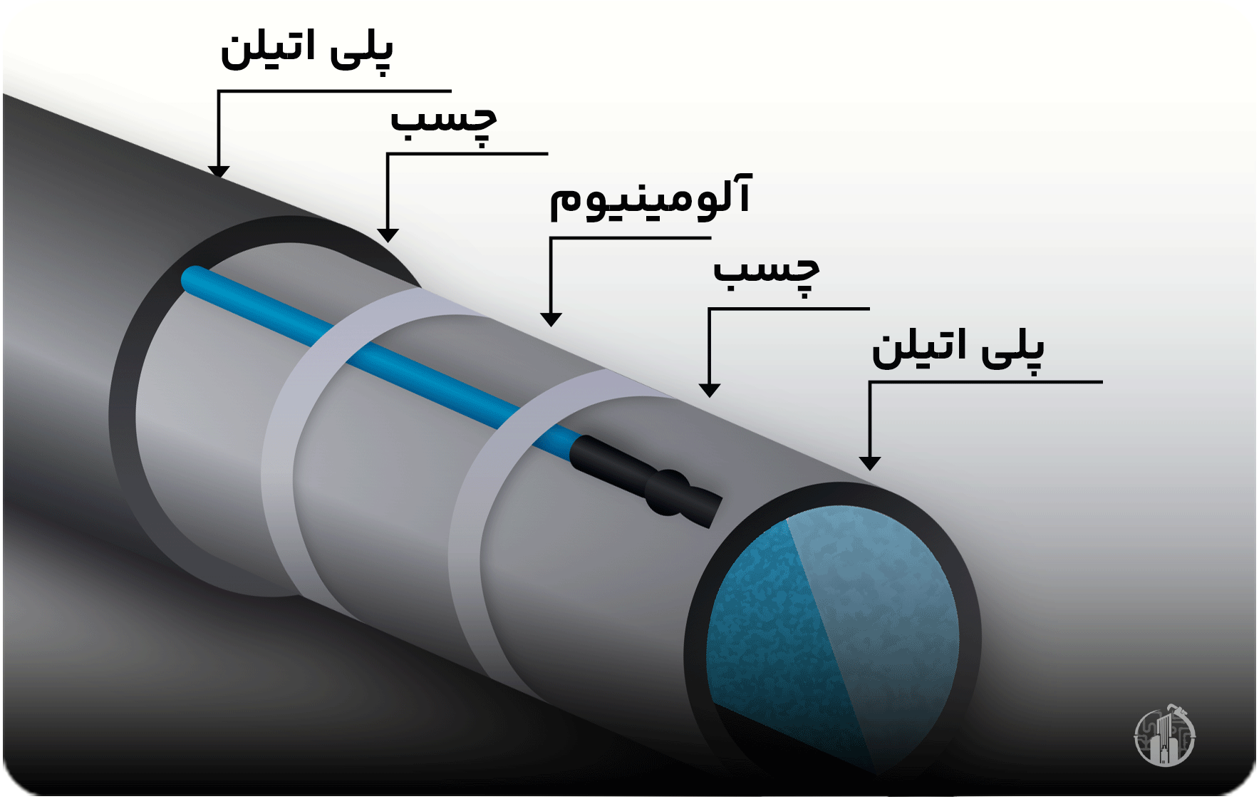 ساختار لوله پنج لایه نیوپایپ، ترکیبی هوشمندانه از مواد مختلف است که آن را به گزینهای ایدهآل تبدیل کرده. این لولهها با نام فنی PEX-AL-PEX شناخته میشوند و شامل پنج لایه اصلی هستند: لایه داخلی پلیاتیلن شبکهای شده (PEX)، لایه چسب اول، لایه میانی آلومینیوم، لایه چسب دوم و لایه خارجی PEX. لایههای پلیاتیلن داخلی و خارجی، مقاومت در برابر حرارت و فشار را فراهم میکنند، در حالی که لایه آلومینیوم مانند یک barrier عمل کرده و از ورود اکسیژن و تغییر شکل لوله جلوگیری مینماید.