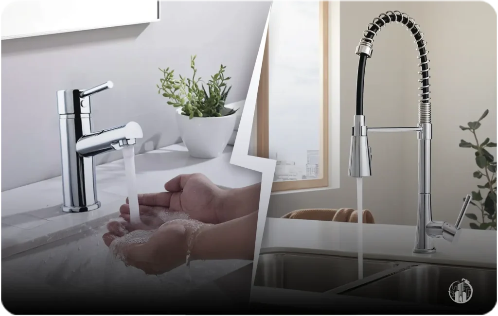 در حالی که شیر روشویی برای سرویس بهداشتی طراحی شده، شیر ظرفشویی برای آشپزخانه کاربرد دارد. با این حال، برخی برندها مانند کی دبلیو سی از طراحیهای شیر ظرفشویی در مدلهای روشویی الهام گرفتهاند تا ظاهری مدرنتر ارائه دهند. برخلاف شیر ظرفشویی که اغلب دارای علم متحرک است، شیرهای روشویی معمولاً ثابت هستند، مگر در مدلهای خاص مانند زدرا از برند شودر.